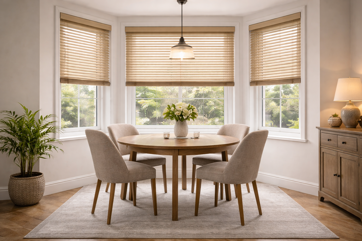 | Bay Window Blinds | Each section has its own blind, with slim lines between panes | Light, simple and understated | Modern rooms or where you don’t want the window to dominate | Make sure each blind is measured precisely to avoid uneven gaps or misalignment |