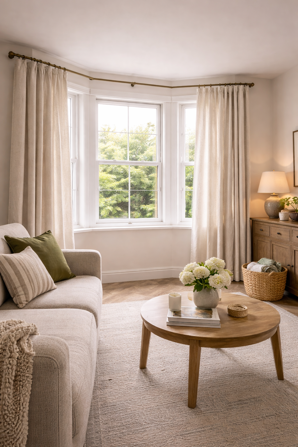 | Bay Window Curtains | Fabric sweeping across the entire bay from a single track | Warm, traditional and inviting | Taller ceilings or period properties | The track must follow the bay angle accurately to prevent bunching |